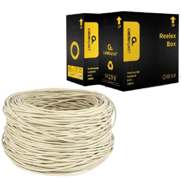 Model: UTP LAN licnasti kabl. Cablexpert. Kategorija: 5e, cat.5e. Unshielded twisted pair. Materijal: AWG24, standardna legura bakar-aluminijum CCA. Dužina kabla: 100m (328ft). Boja: siva. Prodaje se na kotur.