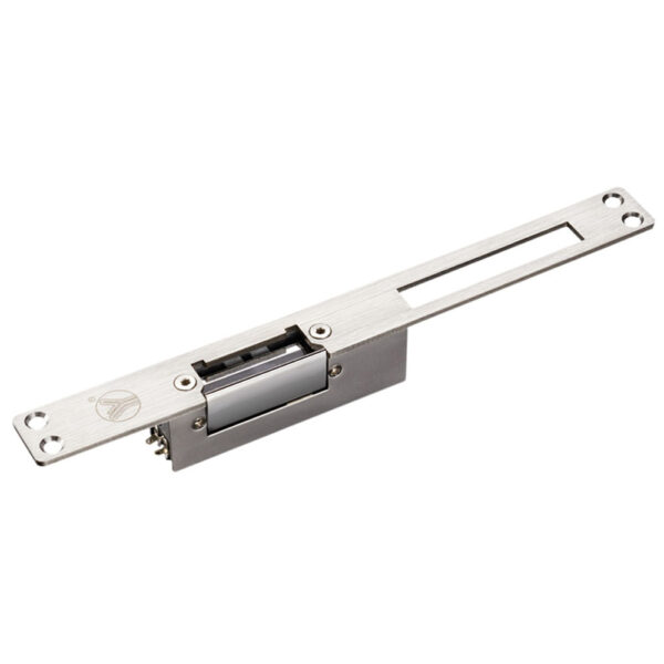 Elektroprihvatnik (zaključan kada je bez napona) sa silom držanja do 300 kg. Dimenzije DxŠxV: 250 x 25 x 31.5 mm. Struktura reze: Liveni Zink. Snaga držanja: 300kg. Napon napajanja: DC12V. Struja pokretanja: 650mA. Ugrađen jezičak brave za NO stanje. Podesno za uska drvena i metalna vrata. Moguća montaža na leva ili desna vrata. Površinska temperatura: do +20℃ Podesna radna temperatura: -10 ~ +55℃. Radna vlažnost: 0 ~ 90% (bez kondenzacije). Prednja ploča zaštićena niklom Težina: 0.35kg.