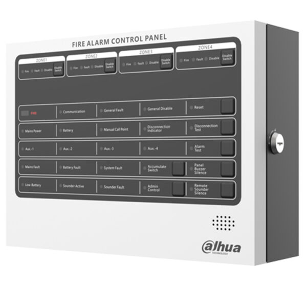 Konvencionalna centrala za sisteme detekcije požara. 4 zone, do 32 konvencionalnih uređaja po zoni. 4 suva kontakta. Izlaz za požarno zvono 28VDc /500mA. Sirena do 60db (greške/alarm). RS485 port. RJ45 port za konekciju sa platformom (IoT komunikacija). Napajanje 90-270VAc. Sa prostorom za baterije i baterijama 2x12V, 2.5Ah (u kompletu), 2 alarmna izlaza i relejnim izlazom. Log i eksport događa (požar, greška, unos. Radna temperatura –10°C~+50°C. Masa 3.5 kg (5kg sa baterijama). IP30 sertifikovana. Nazidna montaža.