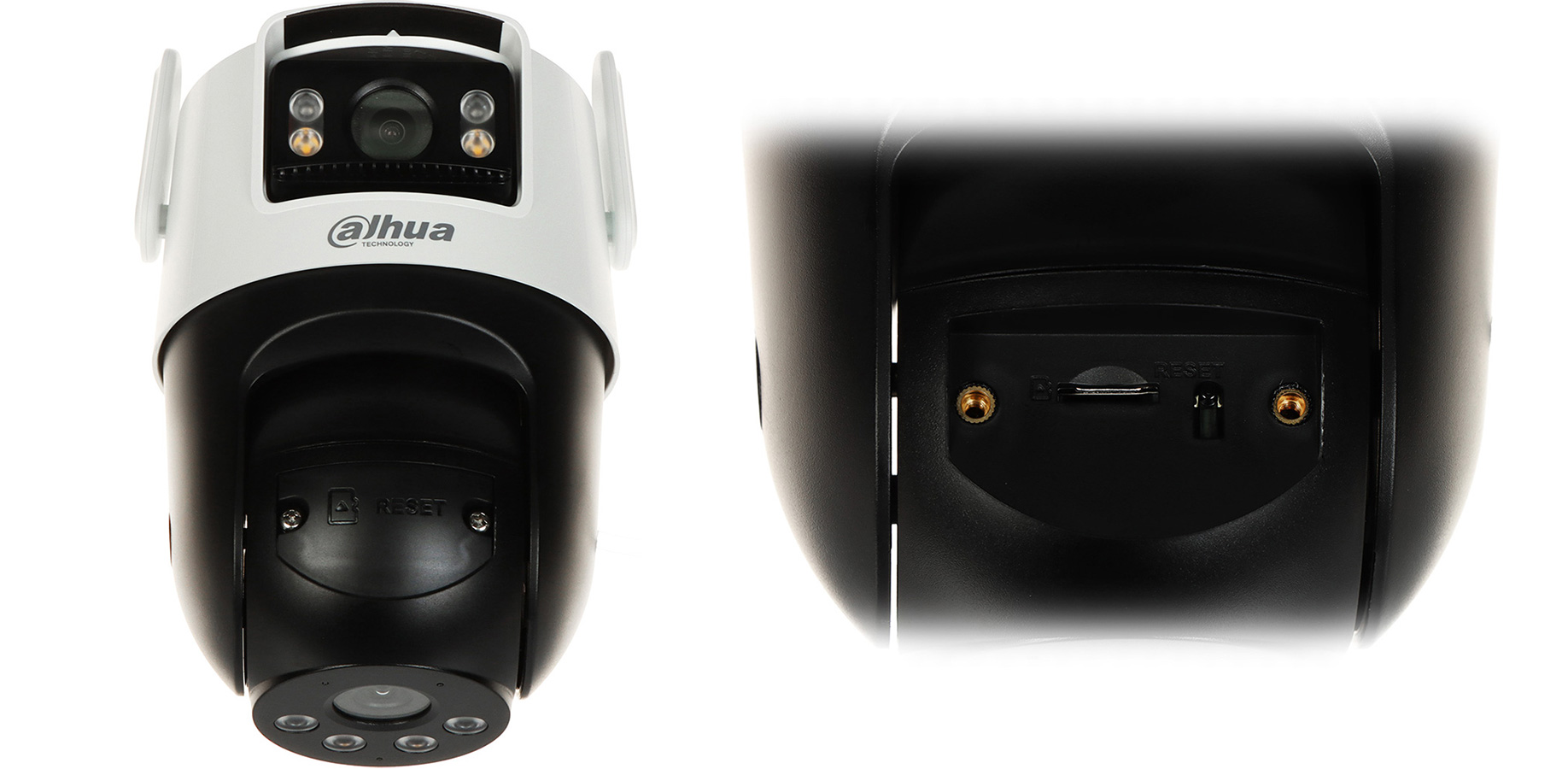 WiFi IP 5MP fiksna+5MP PT kamera, IC + belo svetlo; Picoo Dual serija; Smart Dual Light; Detekcija pokreta; AI Analitika + aktivno odvraćanje; Bluetooth; Mikrofon; Zvučnik/Sirena: MicroSD; IP66. WiFi IP 5MP+5MP IC + WL Dual Lens PT kamera. Picoo Dual serija. Fiksna kamera: 1/3” 5MP CMOS, progresivno skeniranje. Efektivni broj piksela 2880×1620. IC dometa do 30m. Beli LE dometa do 20m. Smart Dual Light. Fiksni objektiv 2.8mm F1.6, vidni ugao 95° horizontalno. Ručno podešavanje ugla: -10°~15°. PT kamera: 1/2.8” 5MP CMOS, progresivno skeniranje. Efektivni broj piksela 2880×1620. IC dometa do 50m. Beli LE dometa do 40m. Smart Dual Light. Fiksni objektiv 6mm F1.6, vidni ugao 49° horizontalno. Opseg horizontalne rotacije 0°–352°, opseg vertikalne rotacije 0° do +90°. DWDR. Preset patrol. Detekcija pokreta. AI Analitika – detekcija ljudi i vozila. Pametna detekcija na oba video kanala. Funkcija aktivnog odvraćanja. Auto tracking. H.265 kompresija. Dual stream. Podržane rezolucije 2880×1620, 640×360. Frame rate do 15ps u svim rezolucijama. Bitrate H265: 768 kbps~4096 kbps. DWDR. Ugrađen mikrofon i zvučnik, dvosmerni audio. Audio bitrate: G.711a. Skladištenje: Micro SD slot (do 256GB). Bluetooth uparivanje. WiFi 2.4 GHz (IEEE 802.11b/g/n/ax). RJ45 10/100 Base-T mrežni port. Menadžment softver: DMSS. Dimenzije 159.4mm × 119.1mm x 210mm. Plastično kućište. Masa 0.585kg. IP66 stepen zaštite. Opseg radne temperature –20°C do +50°C. Napajanje 12VDc, do 10.6W. U kompletu sa napajanjem i nosačem za plafonsku/zidnu montažu. Sertifikacija CE.