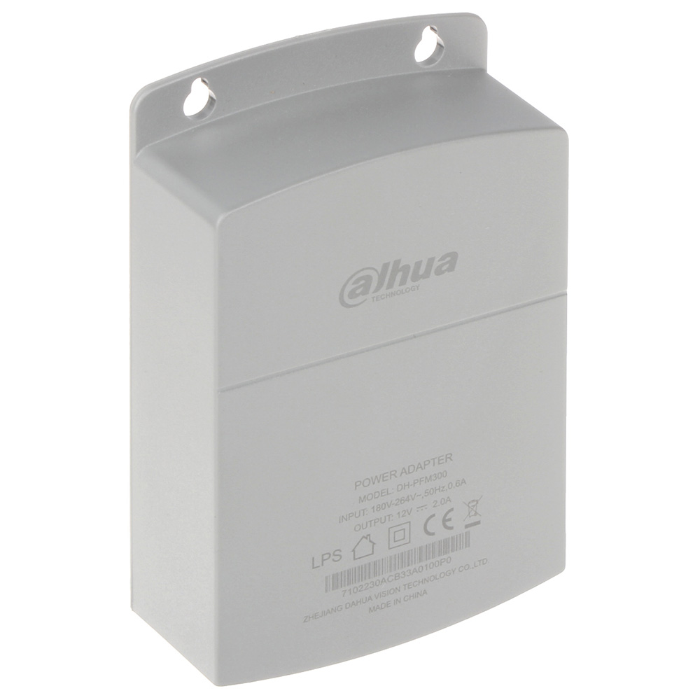 Dahua napojna jedinica 220VAc /12 VDc 2A; Dimenzije 88mm x 37mm x 138mm; Masa 160g; Radna temperatura – 30°C~+70°C; Prostor za smeštaj konekcija i baluna; Za nazidnu montažu; Od V-0 negorive sive plastike.