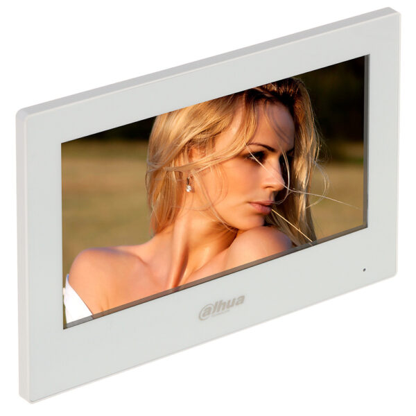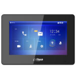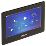 IP SIP 2.0 video intercom hands-free monitor, touch-screen. 7″ TFT LCD, kapacitivni touch-screen. Rezolucija 1024×600 piksela. Interna komunikacija – pozivanje kroz imenik. Snapshot i Video snimanje. Micro SD slot (do 64GB). Video monitoring glavnih i sekundarnih panela. Monitoring do 32 Dahua IP kamere. Kontrola el. brave. SOS funkcija – poziv portiru. Dimenzije 189.0mm ×130.0mm ×26.9 mm. 1×10/100Mbps Ethernet port, RJ45. 6 alarmnih ulaza, 1 alarmni izlaz. RS485 port. Lokalni naponski izlaz 12V/100mA. Ulaz za zvono. Funkcija alarmne tastature/centrale. Potrebno napajanje 12VDc direktno ili standardni PoE, 6W. Crne boja. CE, FSS.