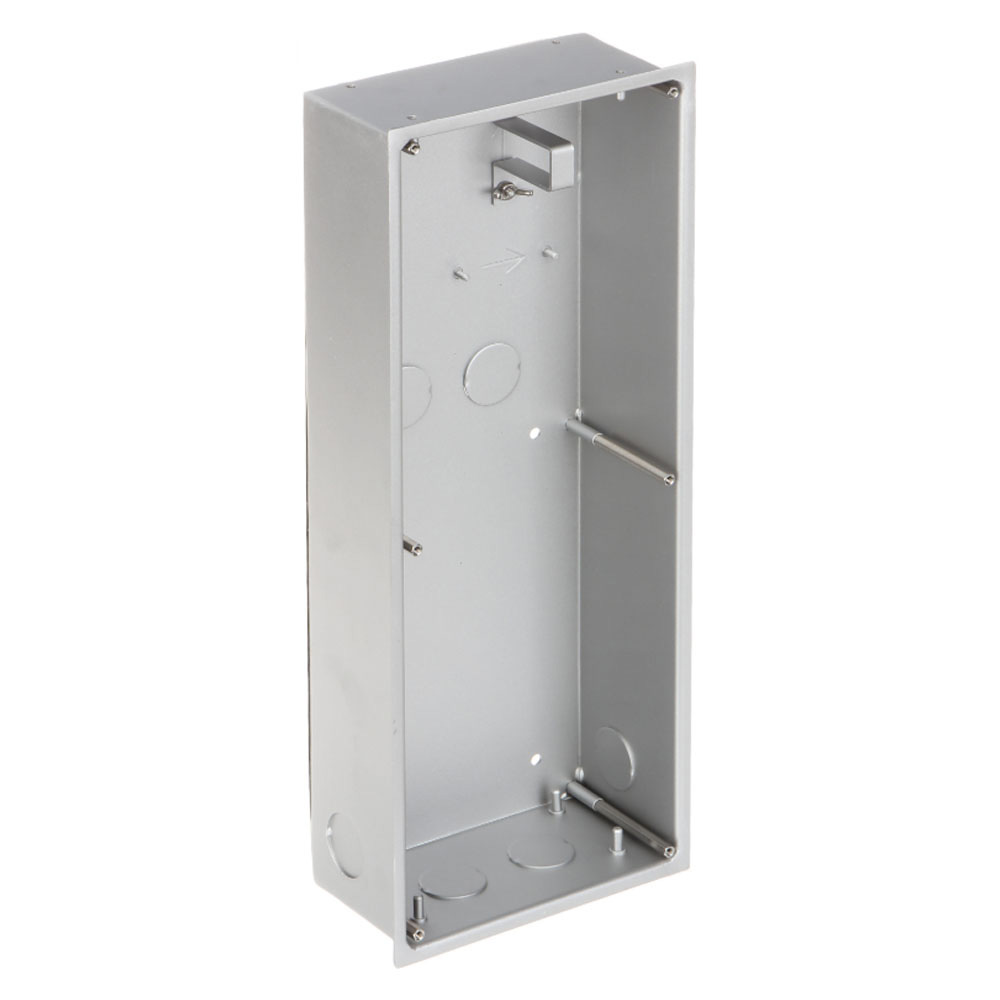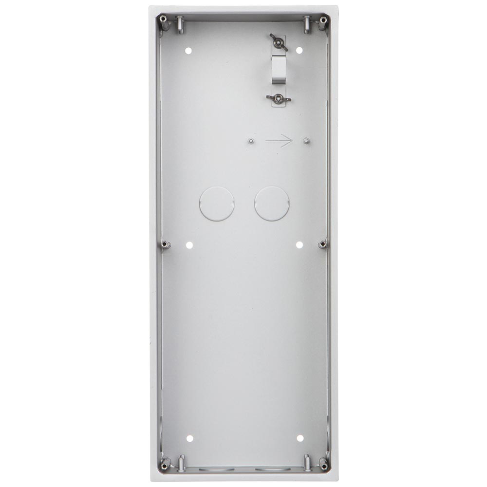 Kutija za montažu 3 modula. Moguća horizontalna ili vertikalna montaža modula, kutije i rama. Za pozivne panele serije 4000. Dimenzije 133mm×333.40mm×68.0mm. Za uzidnu ili nazidnu montažu. Od aluminijuma.