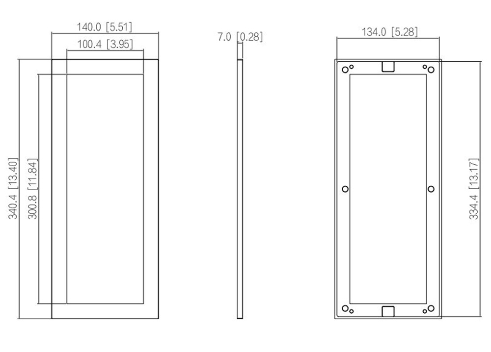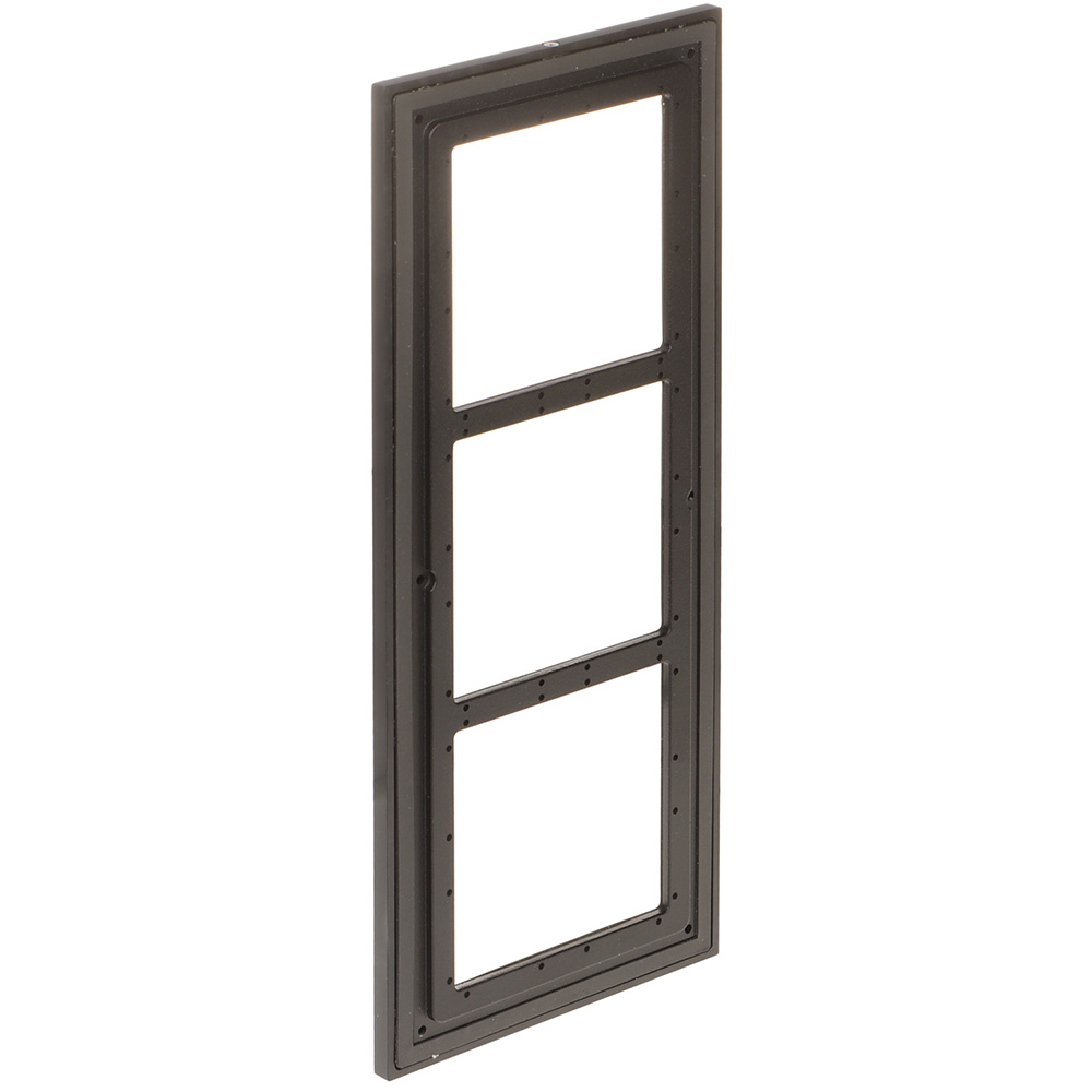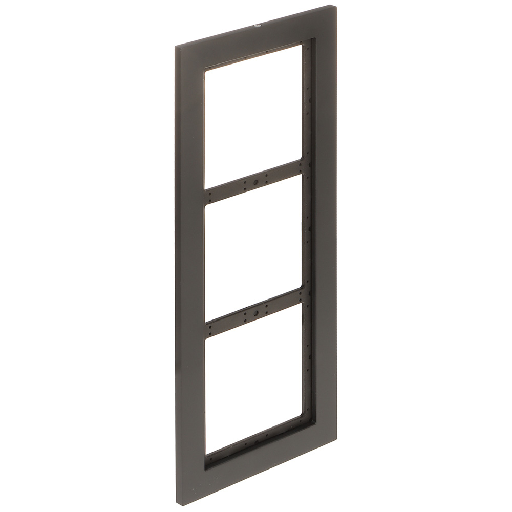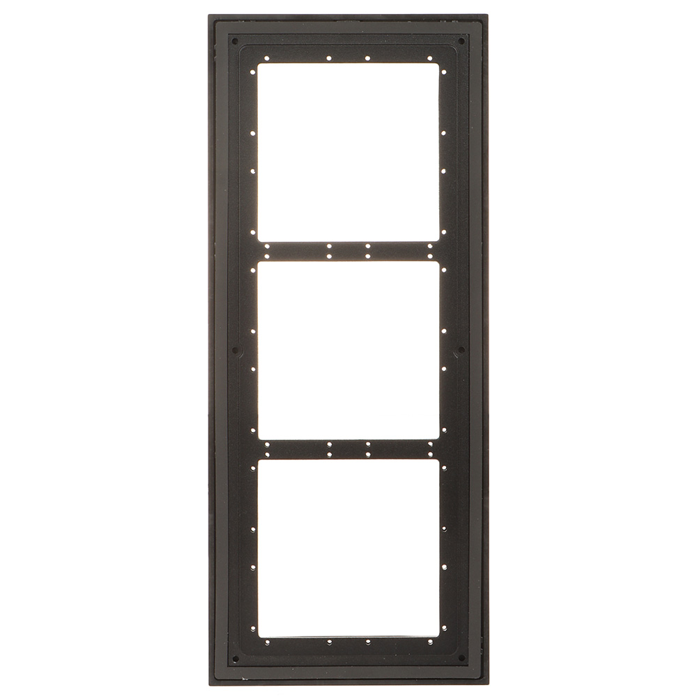 Ram za montažu 3 modula. Moguća horizontalna ili vertikalna montaža modula, kutije i rama. Za pozivne panele serije 4000. Dimenzije 140mm×340.40mm×7.0mm. Od aluminijuma, u crnoj boji.