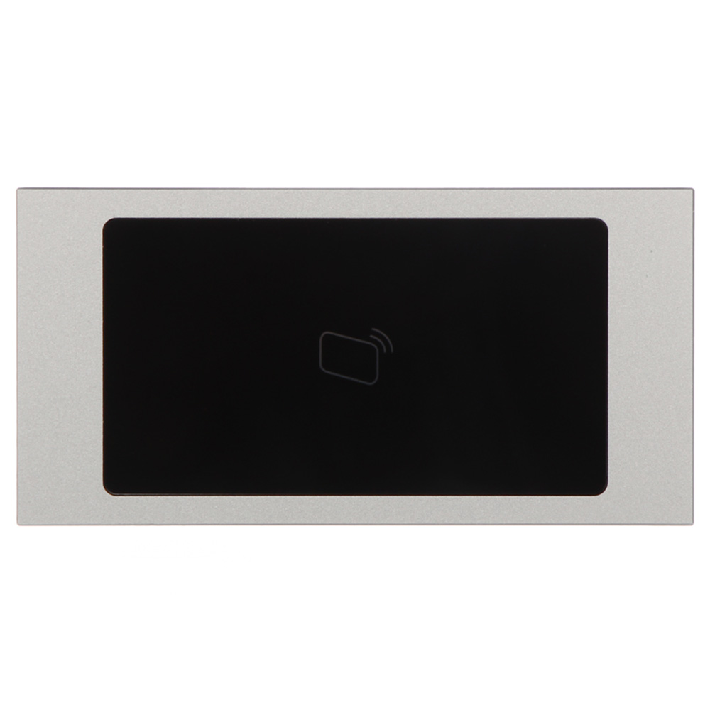 Modul sa 13.56MHz Mifare čitačem. Za pozivne panele serije 4000. Aluminijumski. Dimenzije 100mm×49.9mm×28.5mm. IP65 stepen zaštite. IK07 otpornost. Radna temperatura -20°C to +60°C. Napajanje 5VDc iz modula kamere. Potrošnja 1W.