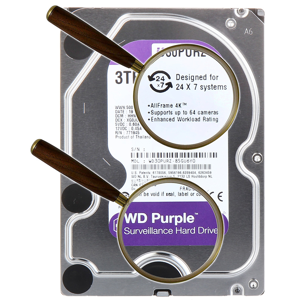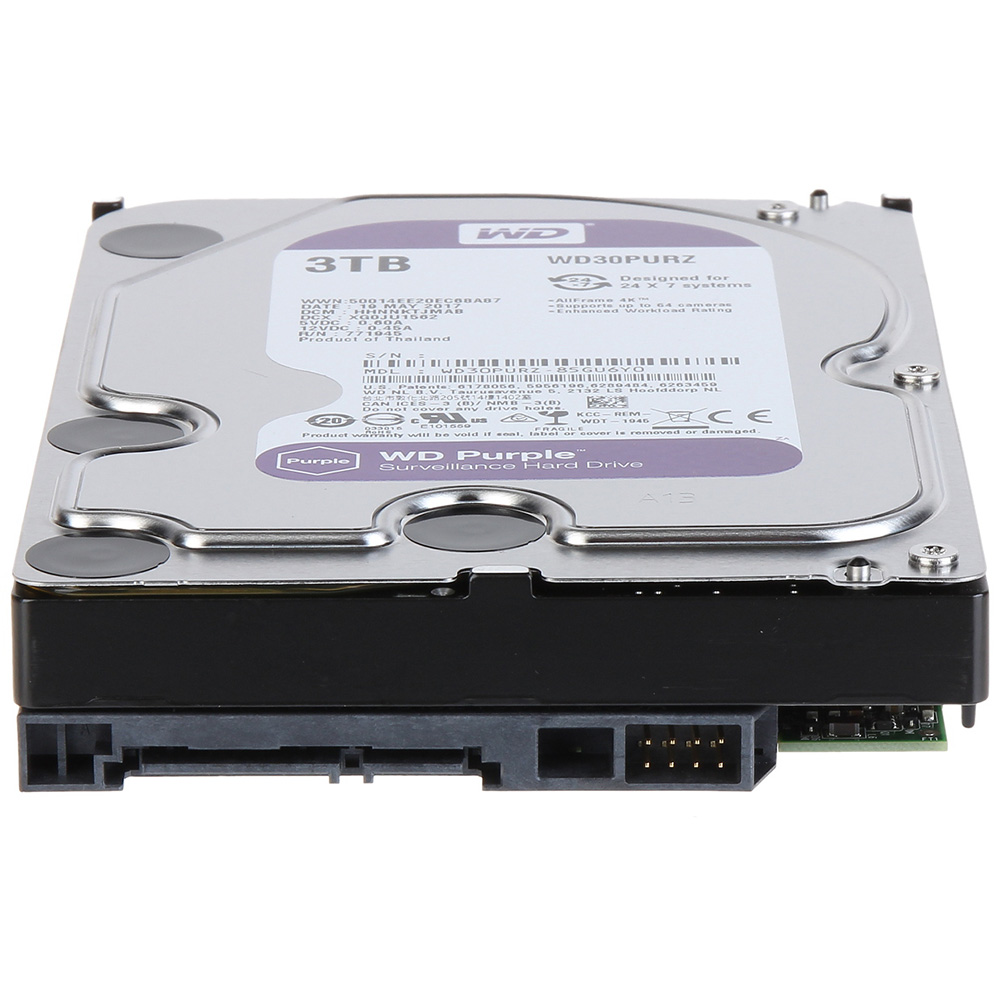 WD Purple diskovi za video nadzor su napravljeni za 24/7 non-stop nadzor u sigurnosnim sistemima visoke definicije koji koriste do osam hard diskova i do 32 kamere. Ekskluzivna AllFrame tehnologija radi sa ATA strimovanjem da smanji greške pikselizacije i prekide video snimka koji se pojavljuju kada se desktop klasa hard diskova greškom koristi kao skladište podataka u sistemima nadzora. Model WD30PURX. Kapacitet 3TB. Povezivanje SATA3. Tip Interni. Broj obrtaja u minuti 7200. Format 3.5”. Bafer 64MB.