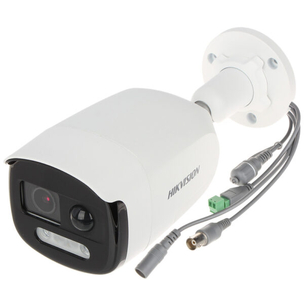 2MP TVI Smart Hybrid light kamera u PT kućištu. 0.01 Lux@(F1.6, AGC ON), 0 Lux with IR. Maksimalna rezolucija 1920×1080. Fiksna optika 2.8mm. DWDR. Domet IC dioda 25 metara, Domet LED dioda 20 metara. Integrisan mikrofon i zvučnik za dvosmernu komunikaciju. 12v napajanje. Materijal: Plastika.