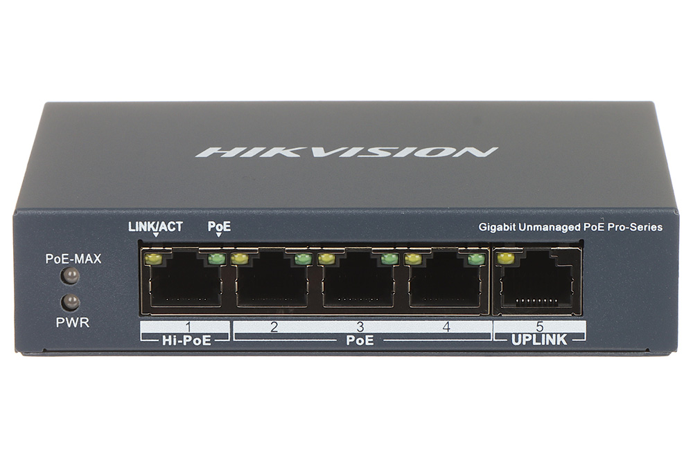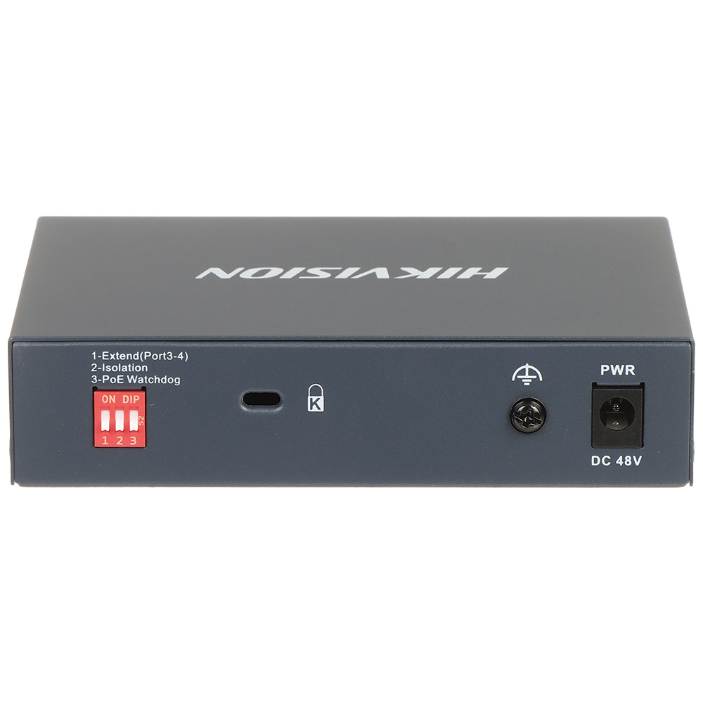 4 porta gigabitni neupravljivi POE svič. 3 × gigabitna PoE porta, 1 × gigabit Hi-PoE port i 1 × gigabit RJ45 port, IEEE 802.3at/af/bt standard za Hi-PoE port (Max. snaga 60 W PoE ).6 KV zastita od groma za PoE portove, do 300 m mogućnost preko HI-POE,PoE watchdog koji automatski detektuje da kamera nije aktivna i resetujuje, bez ventilatora u metalnom kućištu.