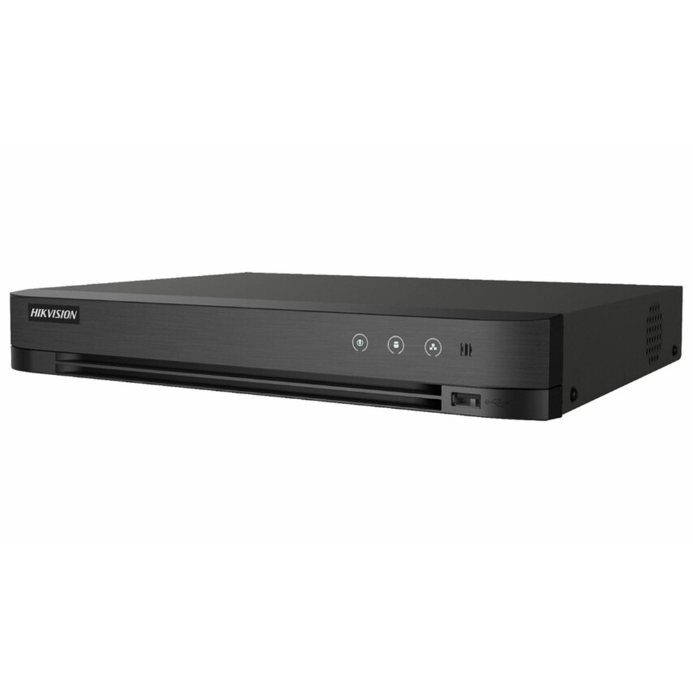 Turbo AcuSense video snimač sa 16 analogna kanala i 8 dodatna IP kanala do rezolucije 6MP. Maksimalna rezolucija snimanja 3K lite. Frame rate: 3k lite@12fps/ 1080p lite@20fps. Kompresija snimanja: H.265 Pro+. 1x VGA, 1x HDMI, 1x video out. 1x audio in, 1x audio out. 1x RJ45 10M/100M/1000M mrežni interfejs. 1x USB 2.0, 2x USB 3.0. 1HDD maksimalnog kapaciteta 12TB. Motion Detection 2.0 na svim kanalima. Perimetar protection na 8 kanala.