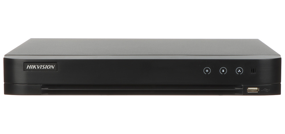 Turbo AcuSense video snimač sa 16 analogna kanala i 8 dodatna IP kanala do rezolucije 6MP. Maksimalna rezolucija snimanja 3K lite. Frame rate: 3K lite@12fps/ 1080p @15fps. Kompresija snimanja: H.265 Pro+. 1x VGA, 1x HDMI. 1x audio in, 1x audio out. 1x RJ45 10M/100M/1000M mrežni interfejs. 1x USB 2.0, 2x USB 3.0. 1HDD maksimalnog kapaciteta 12TB. Human/Vehicle Analysis. Line Crossing Detection/ Intrusion Detection na 8 kanala.