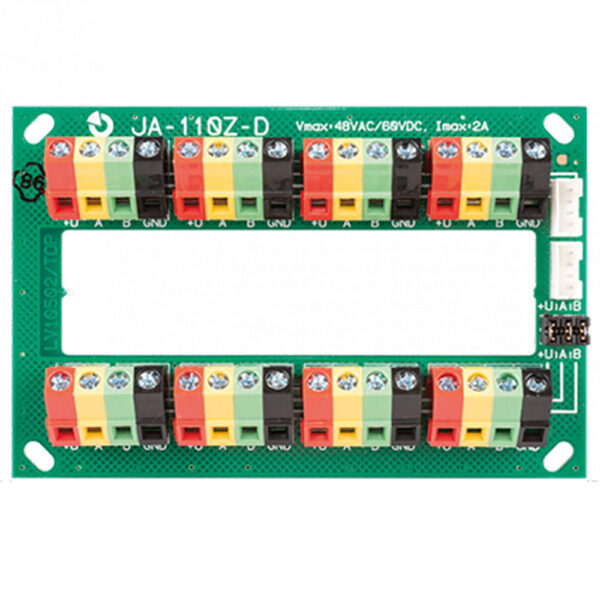 Moduli JA-110Z-B i C su namenjeni za spajanje BUS linija u JABLOTRON 100 sistemu. Moduli se mogu instalirati u kutiju JA-190PL. Maksimalni napon: AC 42 V. Maksimalni napon: DC 60 V. Maksimalna struja: 2 A.