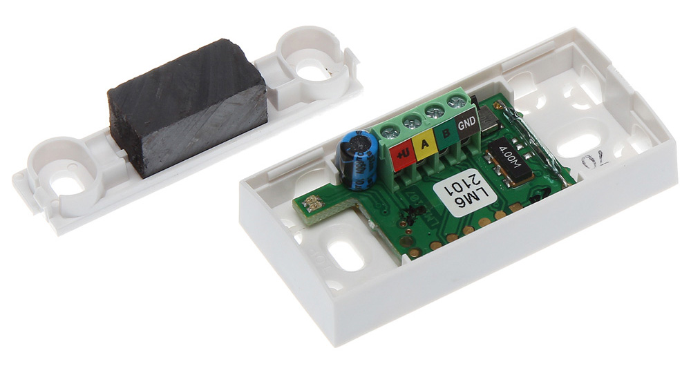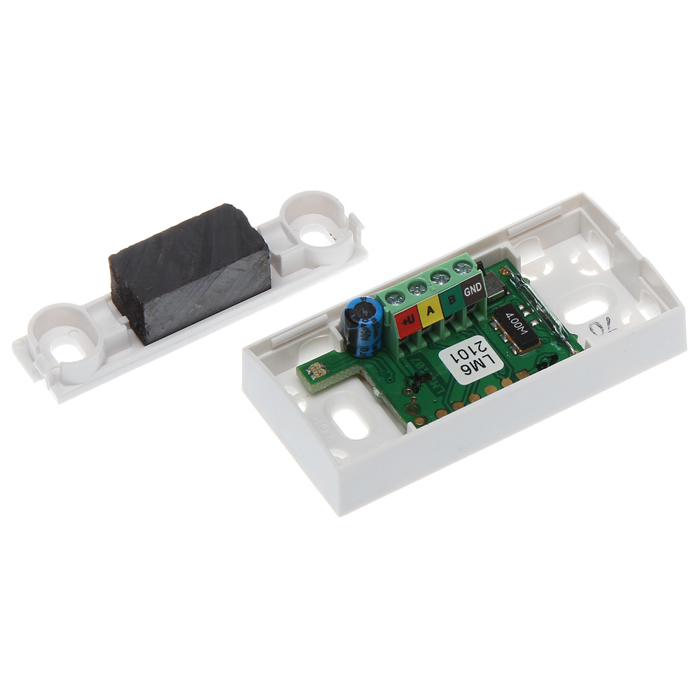 Ovaj detektor otkriva otvaranje vrata ili prozora. Komunikacija sa centralnom jedinicom se odvija po BUS-u. Detektor je opremljen poklopcem sa zaštitom od sabotaže koji je aktiviran ako se poklopac otvori. Senzor se aktivira nakon što se permanentni magnet odmakne od senzora. Napajanje: sa centralne jedinice BUS 12 V (9 – 15 V) * Potrošnja u stanju mirovanja: 5 mA.