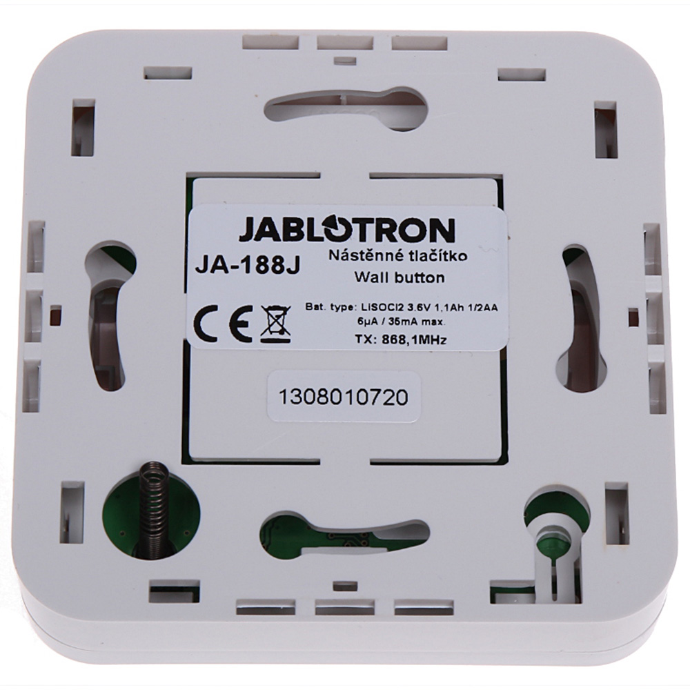 JA-188J se uglavnom koristi kao bežični panik taster ili taster za nuždu. Može se koristiti i kaodaljinski upravljač za uključivanje/isključivanje alarmnog sistema ili daljinsko upravljanje PGizlazima. Ima ugrađen tamper kontakt i nadgleda napon baterije.Napajanje: litijumska baterija tipa LS14250 (3,6 V).Dimenzije: 80 × 80 × 29 mm.