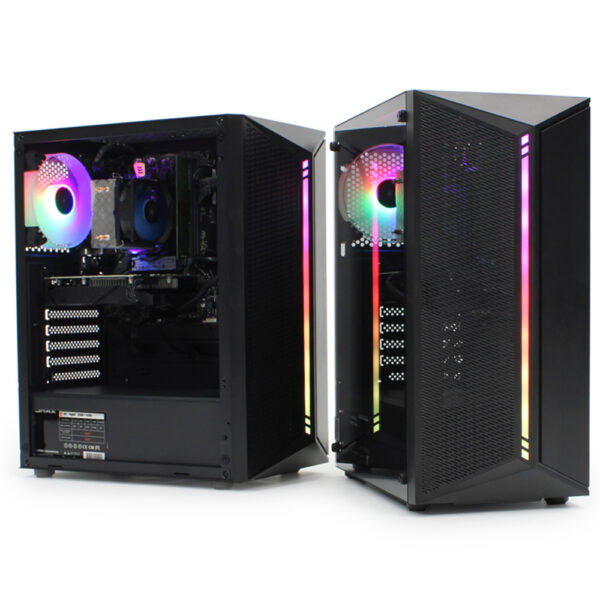 Osnovne karakteristike – Format kućišta: Mid Tower Podržani formati matičnih ploča: ATX,E-ATX,microATX,Mini-ITX Napajanje – Snaga napajanja: Bez napajanja Unutrašnja ležišta – Unutrašnja 3.5″ ležišta: 2 Unutrašnja 2.5″ ležišta: 1 Priključci napred – USB 3.2: 1x USB 3.2 Gen 1 Tip A USB 2.0: 2x Tip A Audio: 2x 3.5mm Kontroler: Dugme na kućištu za odabir predefinisanih ARGB profila Ležišta za ventilatore – Prednja strana: 3x120mm Poleđina: 1x 120mm Gornja strana: 2x120mm Ugrađeni ventilatori – Prednja strana: 3x120mm (ARGB) Ležišta za hladnjake – Prednja strana: 240mm,280mm,360mm Gornja strana: 240mm,360mm Kompatibilnost – Maksimalni broj slotova: 7 Maksimalna visina procesorskog hladnjaka: 160mm Maksimalna dužina grafičke karte: 400mm Fizičke karakteristike – Dimenzije: 477mm x 470mm x 205mm Materijal: Kaljeno staklo Boja: Crna Reklamacioni period – Reklamacioni period: 24 meseca