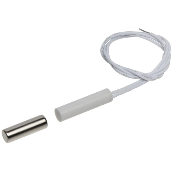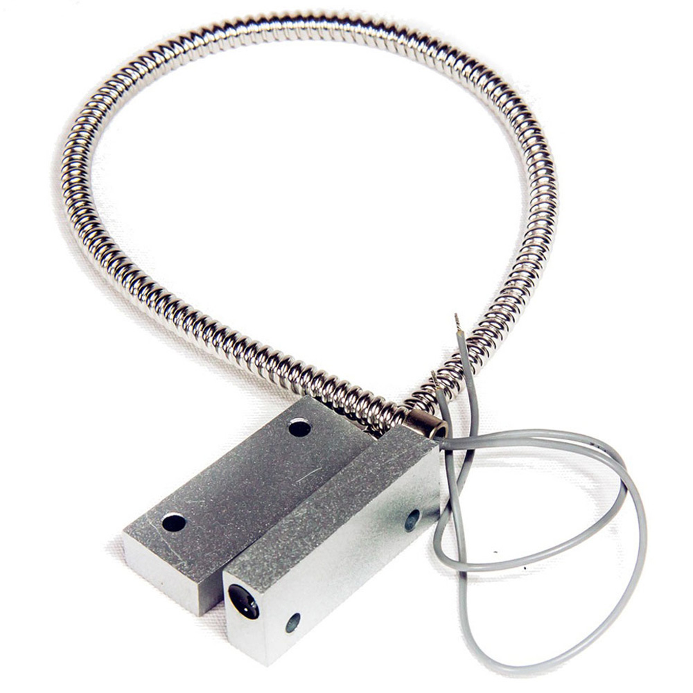 Magnetni prekidač sa nosačem za lakšu montažu. Koristi se u sistemima protivprovalne zaštite kao aktivator usled probijanja zone, najčešće na vratima ili prozoru nekog objekta. Žičana parica se nalazi u čeličnom buziru koji se ne može lako preseći usled provale. U kompletu se dobija magnet, kontaktni deo osetljiv na magnetno polje i šrafovi za montažu. Kada je magnet van dometa, strujno kolo u prekidačkom delu je otvoreno.