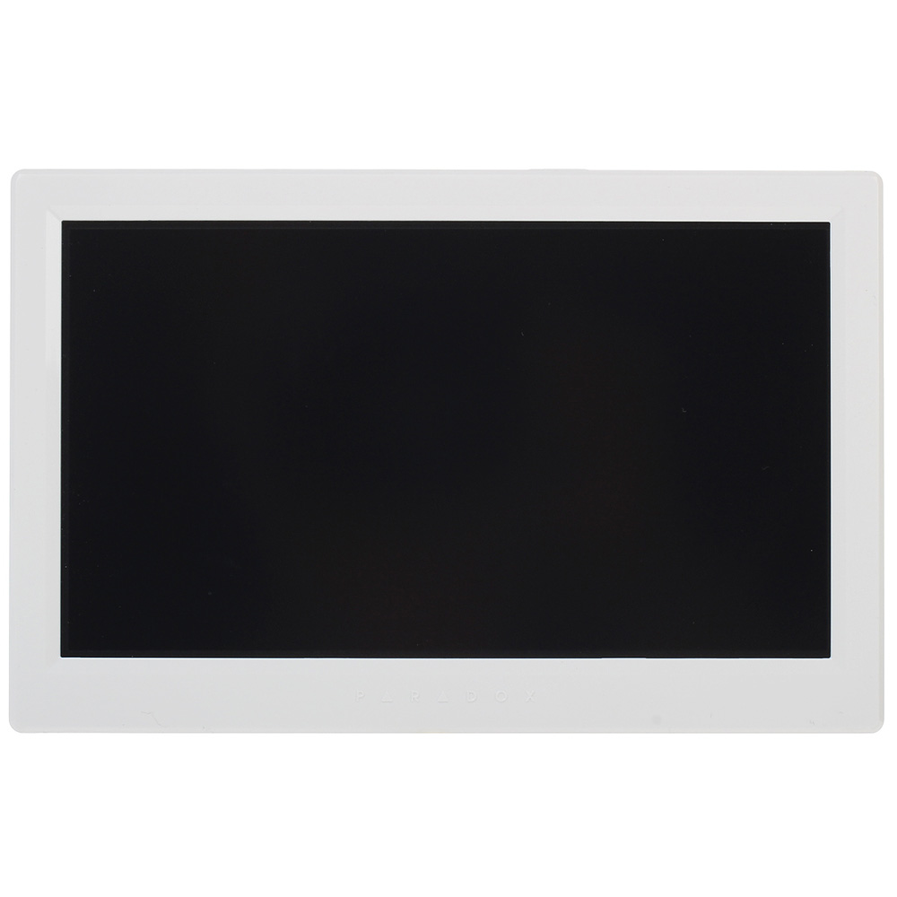 Touchscreen tastatura, displej 7” + SOL (LICENCA). 7” Ekran elegantnog dizajna, izuzetno tanak, kolor ekran (800x400pix), intuitivan grafički meni, kontrolise do 8 PGM izlaza, ažuriranje firmvera putem mikro SD kartice, snažan napredni procesor, jedan zonski/temperaturni ulaz za povezivanje detektora ili spoljnog temperaturnog senzora TEMP07, nazidna montaža, u beloj boji. Isporučuje se sa aktiviranom ”SpotOn Alarm Locator” i ” Floor Plans” funkcijom.