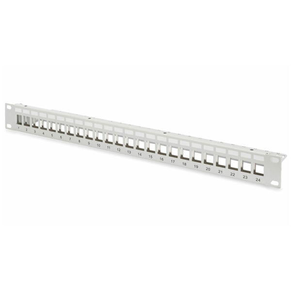 Modularni patch panel 24p, Prazan, Crni, 1U, za rek 19”. Za kategoriju 6, koristi se sa KJ 93601, KJ 93603, KJ 93606 i KJ 93615.