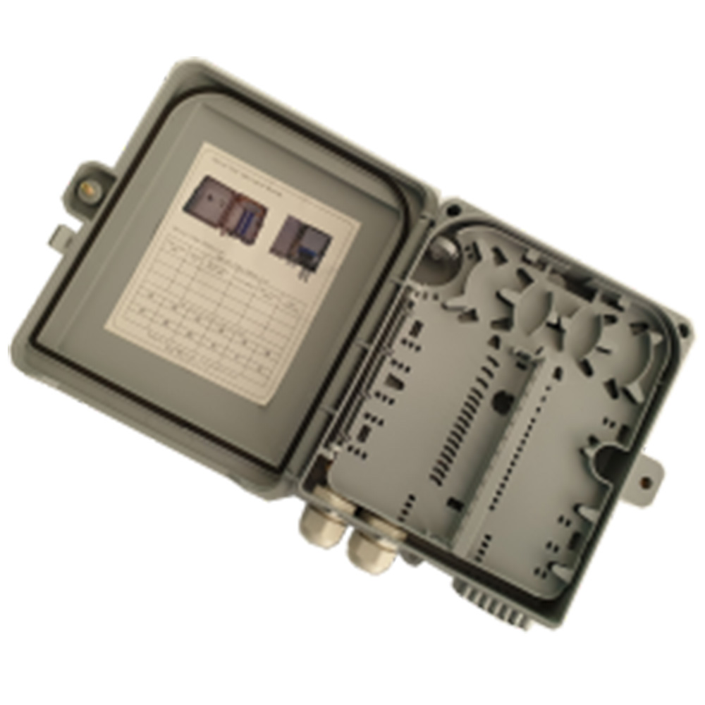 Optička kutija sa 12 slota za konektore za spoljnu montažu, plastična. (Mesto za adaptere je predviđeno za 12 SC simplex konektora ili 12 LC duplex konektora). 2-4 (mogućnost probijanja plastike za ukupno 4 uvodnika) Uvodnika za kablove, vezice, termocevčice 6mm x 12. Dimenzije: 245 x 220 x 65mm.